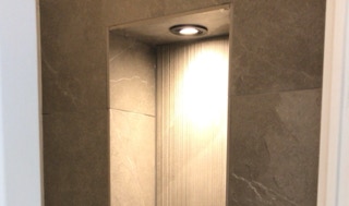 Een inloop douche is de laatste jaren steeds populairder aan het worden, met een handig nisje voor de shampooflessen wordt het wel erg mooi.